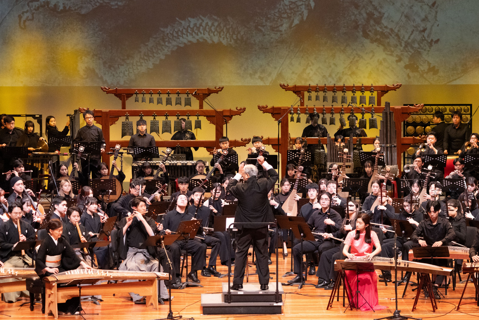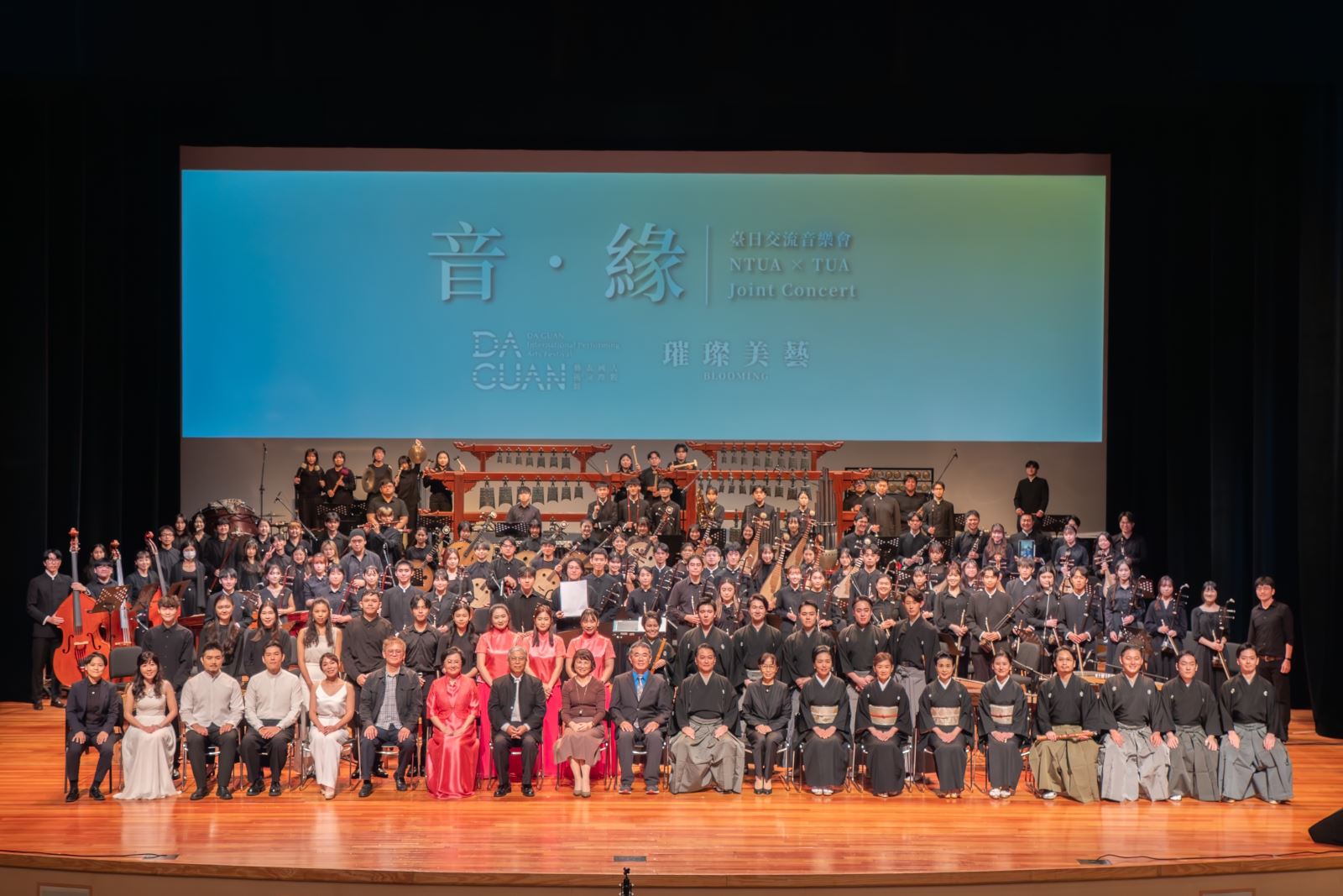 2025年11月23日午後,2025大觀國際表演藝術節《音‧緣——臺日交流音樂會》在本校臺藝表演廳隆重登場。此次音樂會由日本東京藝術大學音樂學部邦樂科(簡稱「東京藝大」)與本校中國音樂學系(簡稱「國樂系」)共同演出,展現兩校在傳統音樂教育與文化傳承之成果。本校與東京藝大簽訂姐妹校於2009年,此次應2025大觀國際表演藝術節之邀,促成了該校邦樂科與本校國樂系的首次實質交流。東京藝大師生一行人在音樂會演出前後,另於國樂系舉辦了數場日本傳統音樂講座與工作坊,深化本校師生對日本傳統文化的認識與理解;此行亦為兩校共同推動傳統音樂文化發展、奠定未來持續交流的堅實基礎。