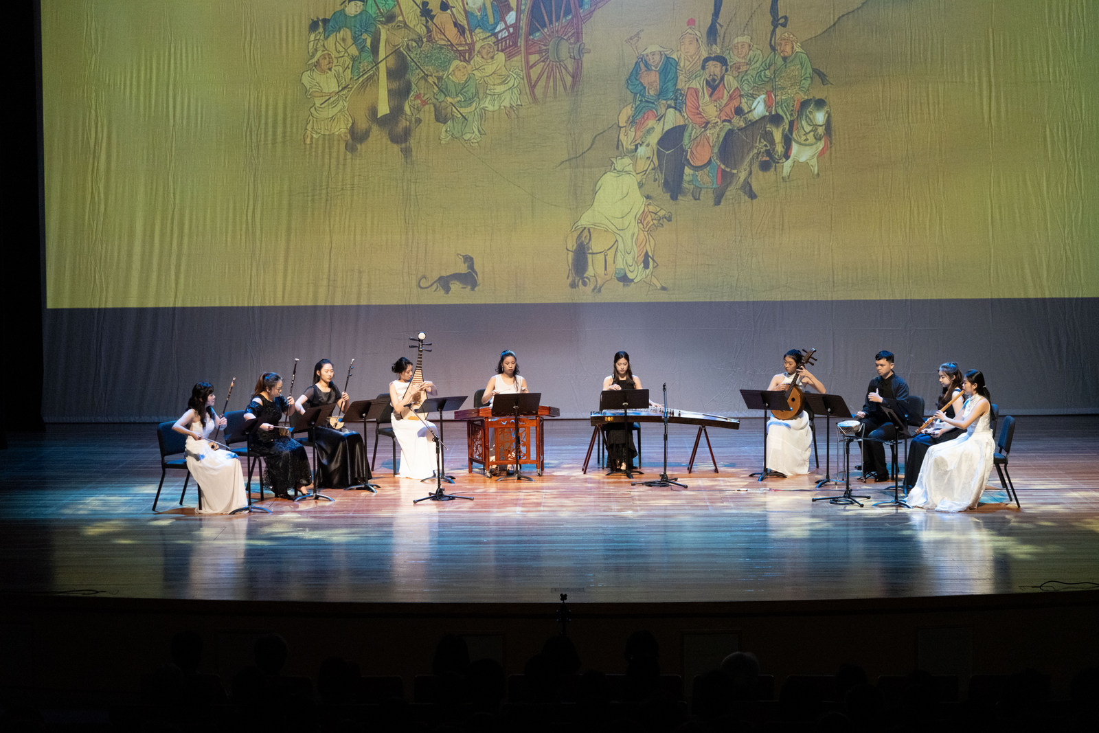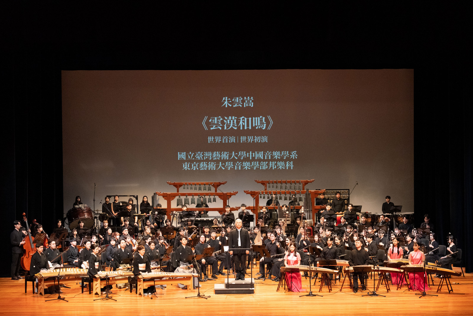 此次音樂會由東京藝大味見純、盧慶順、帯名久仁子、萩原孝子等師生帶來宮城道雄箏重奏曲《櫻花變奏曲》、傳統琴古流尺八曲《鹿之遠音》、坪能克裕為篠笛與尺八而作之《絆之章》以及相傳15世紀由十世杵屋六左衛門所創作之能樂劇目《石橋》(選段)。本校國樂系則由張儷瓊、陳俊憲、陳崇青、郭靖沐、任重、吳孟珊、曾榆尹等師生推出潮州弦詩樂《昭君怨》、客家漢樂箏曲《出水蓮》等傳統曲目,以及刁鵬《LaSoRe》、三個人《三花兒弄梅》與黃新財《歌子幻想曲》等提煉自傳統樂曲的新創曲目。音樂會重頭戲則是委由本校國樂系專任助理教授朱雲嵩為此次音樂會譜寫的《雲漢和鳴》一曲,由兩校師生同台聯演,更搬出國樂系收藏30餘年的仿西周雙音編鐘登場,雄偉鐘聲迴盪在臺藝表演廳,磅礴氣勢融合臺日傳統樂音,共創傳統音樂新火花。