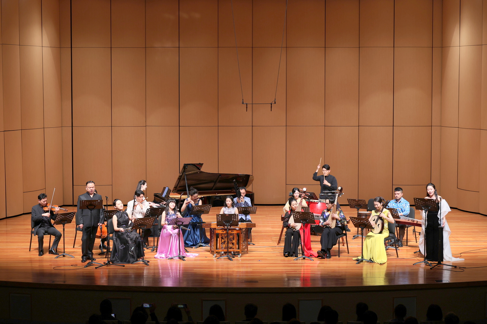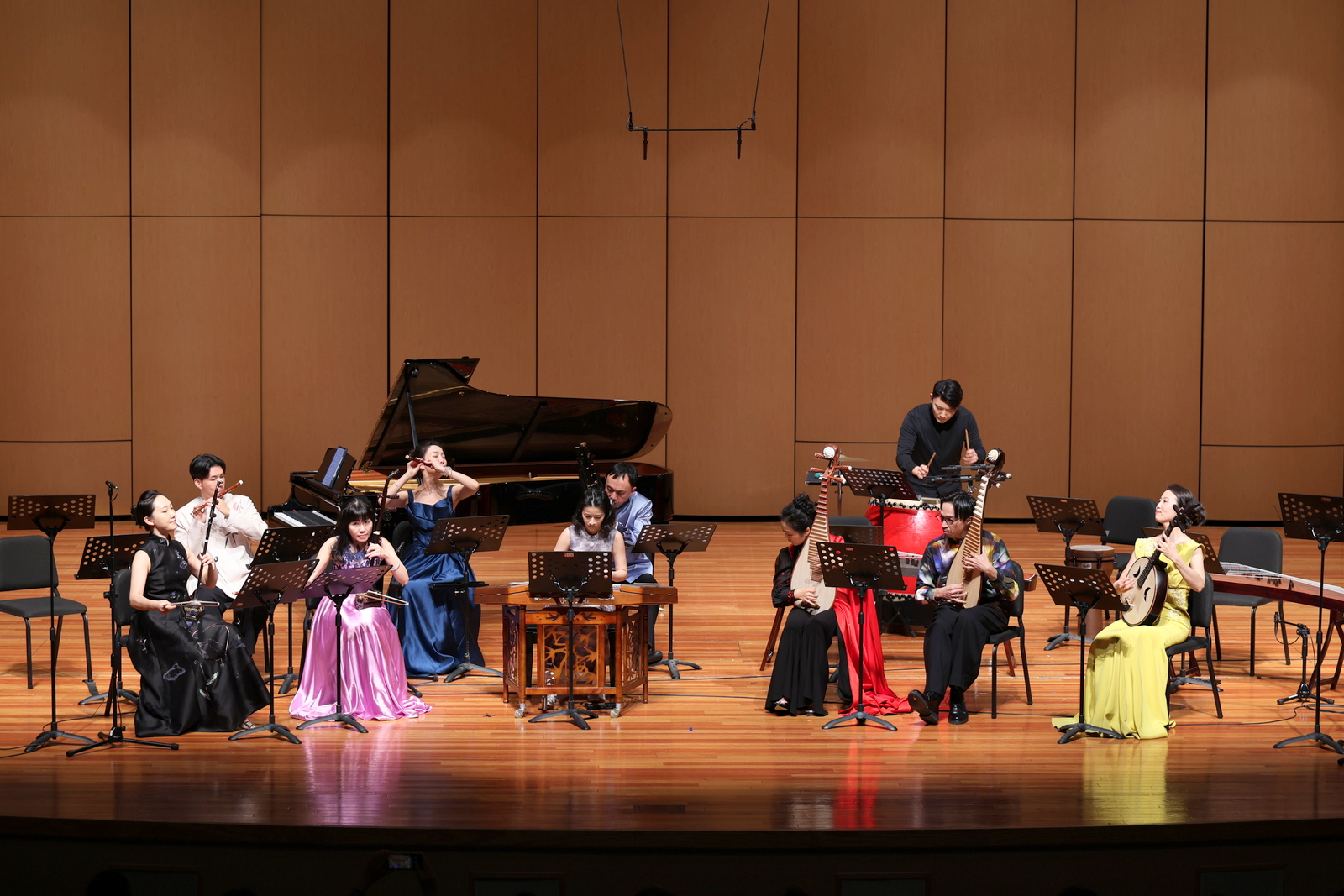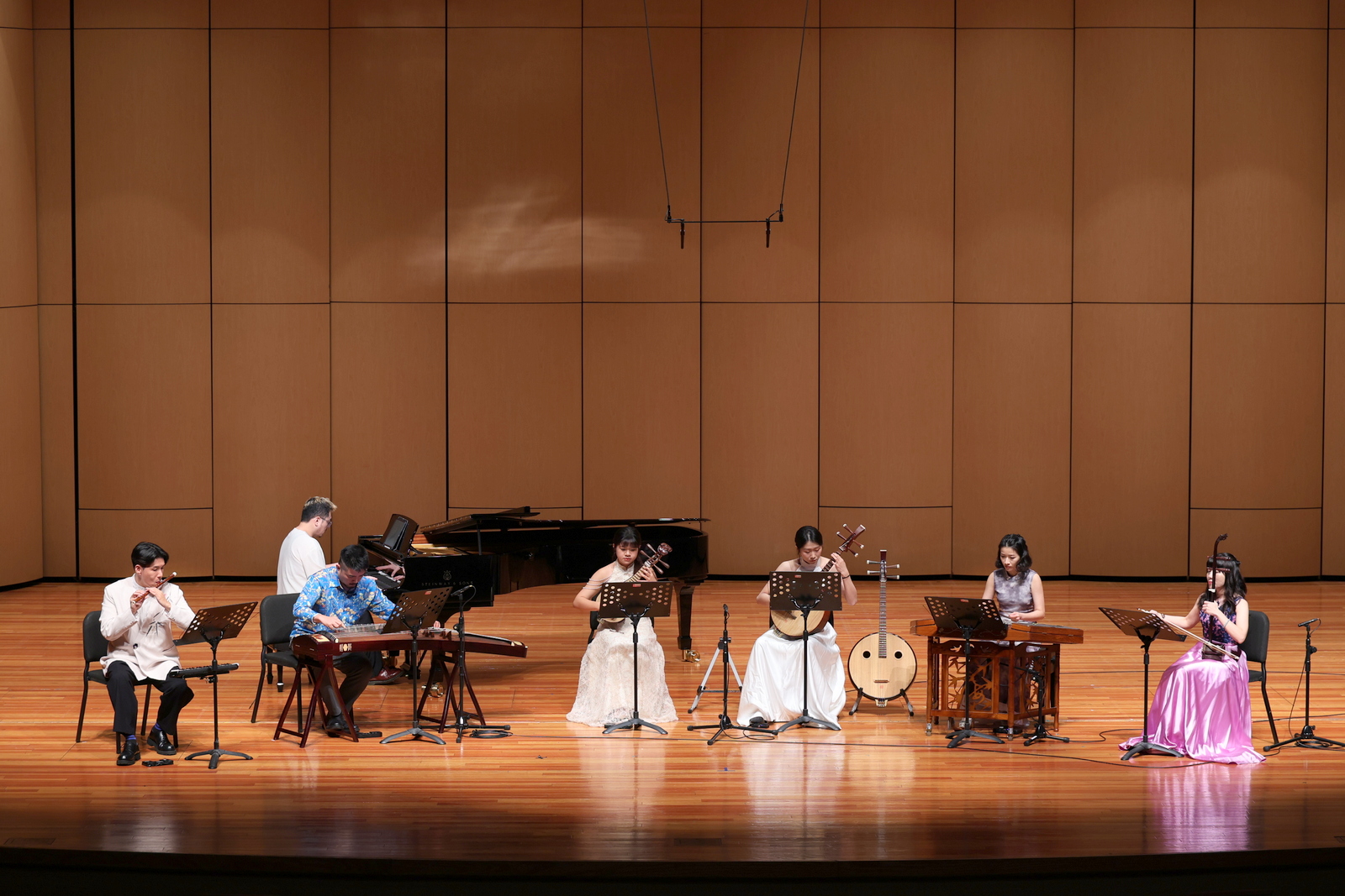 參訪演出人員 中央音樂學院 笙/王磊、古箏/吉煒、琵琶/于源春、竹笛/馮天石、阮/邸琳、二胡/高白、打擊/尹飛、鋼琴/尹一迦、陳一林、小提琴/陳曦、大提琴/朱牧、聲樂/謝天、張怡 臺灣藝術大學 笛/任重、箏/郭靖沐、胡琴/吳孟珊、琵琶/黃立騰、揚琴/杜宛霖、阮/孫聿瑩、柳琴/郭韋君、鋼琴/刁鵬、臺藝絲竹樂團 時間:2025/12/15 地點:臺藝表演廳、國樂系合奏教室、福舟表演廳、音樂系音樂廳